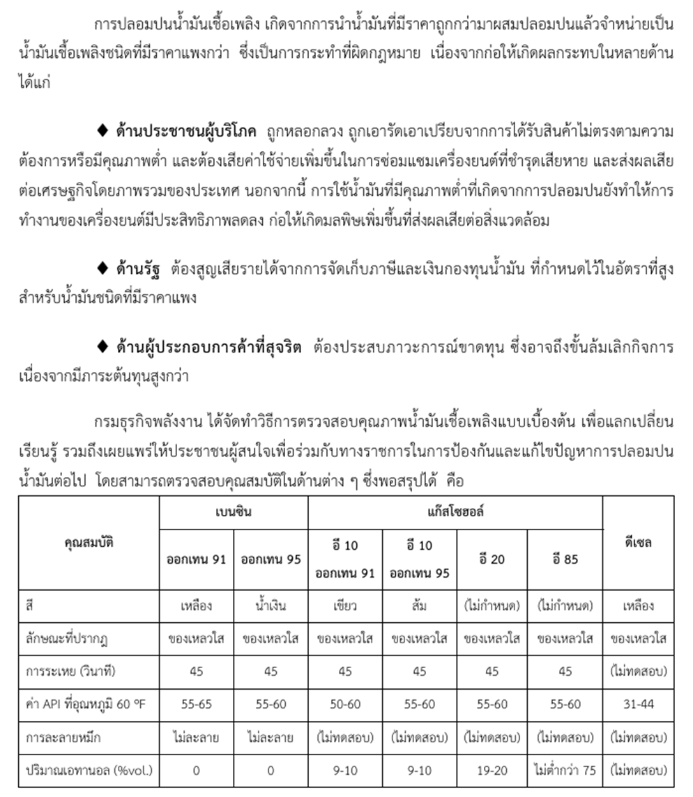 การตรวจสอบน้ำมันปลอมปนเบื้องต้…